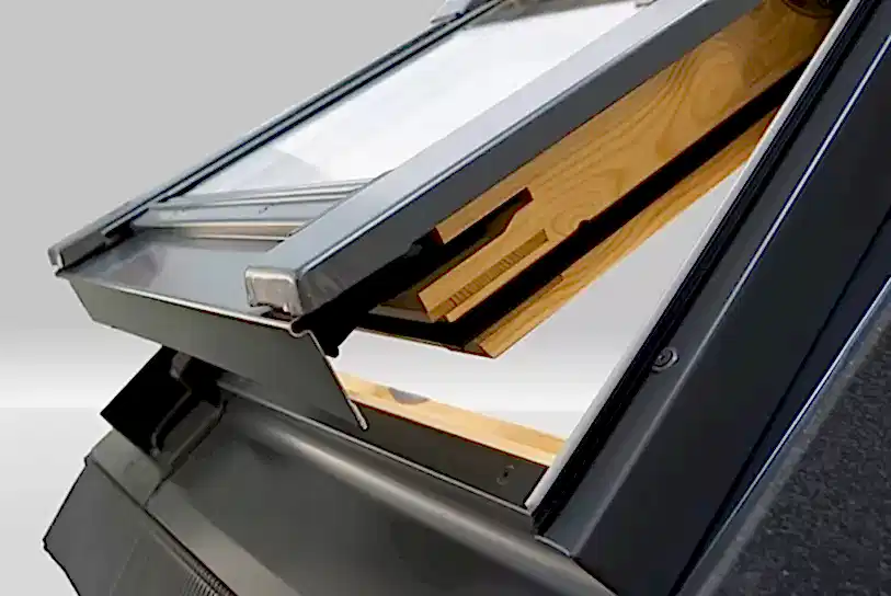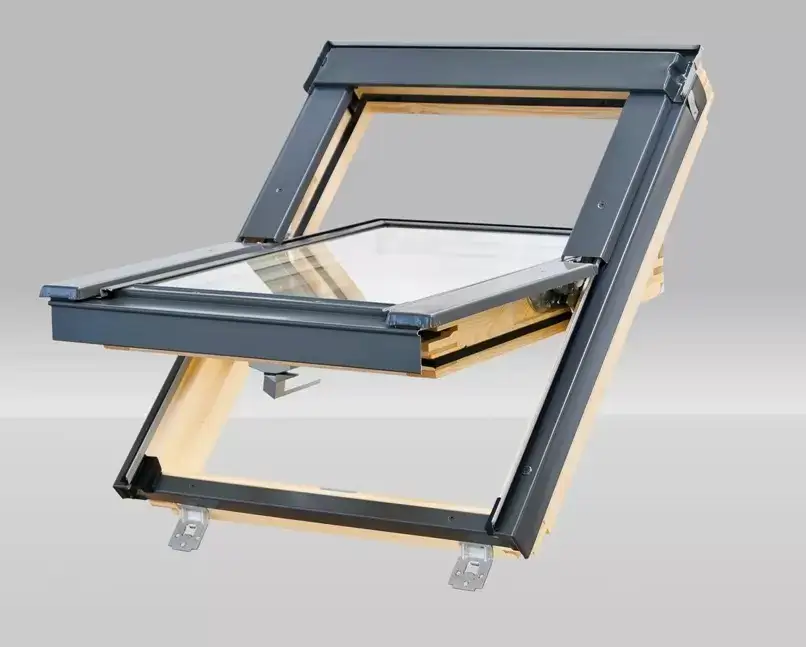 RoofLite Çatı penceresi masif çam ağacından imal edilmiştir. Ancak bu ahşap kısımlar, yağmur veya kar ile temas etmez. Çünkü üst yüzeyi alüminyum eteklikler ile kaplıdır. Ortasında bulunan pivot açılım sağlayan menteşeleri sayesinde kanat kısmı kendi ekseni etrafında 180 derece dönerek dıştaki cam içeri döner ve kolayca temizlenebilir.